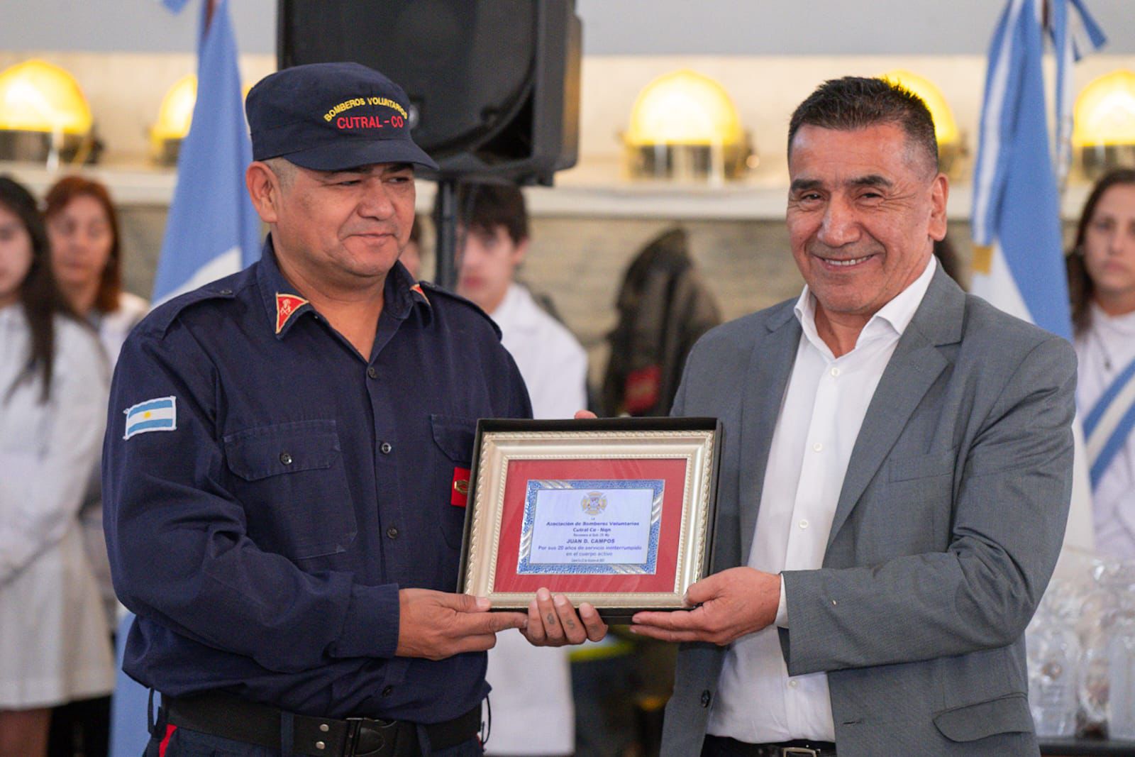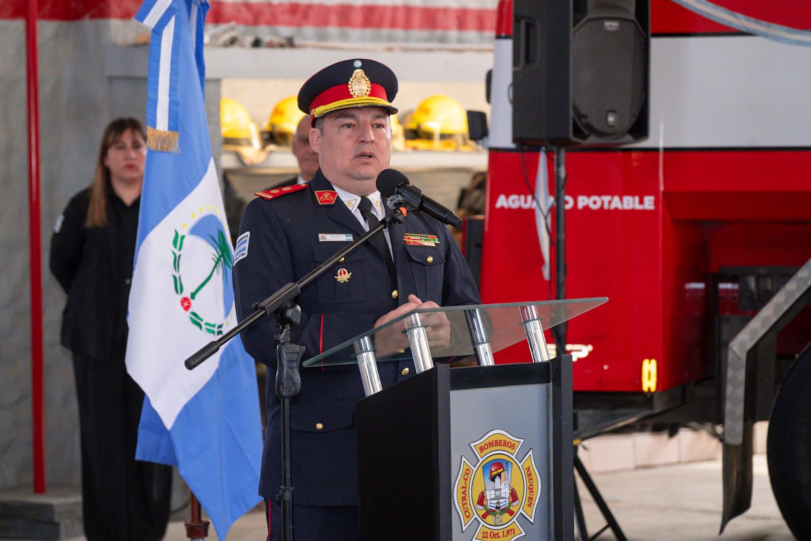 En su discurso, el Jefe Comunal expresó: “Los vecinos de Cutral Co debemos sentirnos orgullosos del cuartel de bomberos que tenemos, por su calidad humana, su dedicación, su conducción y el gran equipamiento con el que cuentan. Cada seis meses o un año los fortalecemos con infraestructura o equipamiento nuevo. Les agradezco porque siempre están al servicio de la comunidad. ¡Feliz cumpleaños!”