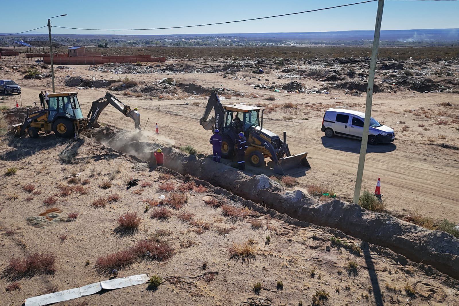 El Municipio de Cutral Co continúa fortaleciendo la infraestructura básica en los barrios de la ciudad. En esta oportunidad, el intendente Ramón Rioseco recorrió la obra de ampliación de la red de gas en el barrio Pueblo Nuevo, acompañado por el secretario de Obras Públicas, Ing. Henry Torrico, y la presidenta barrial, Erica Matus.