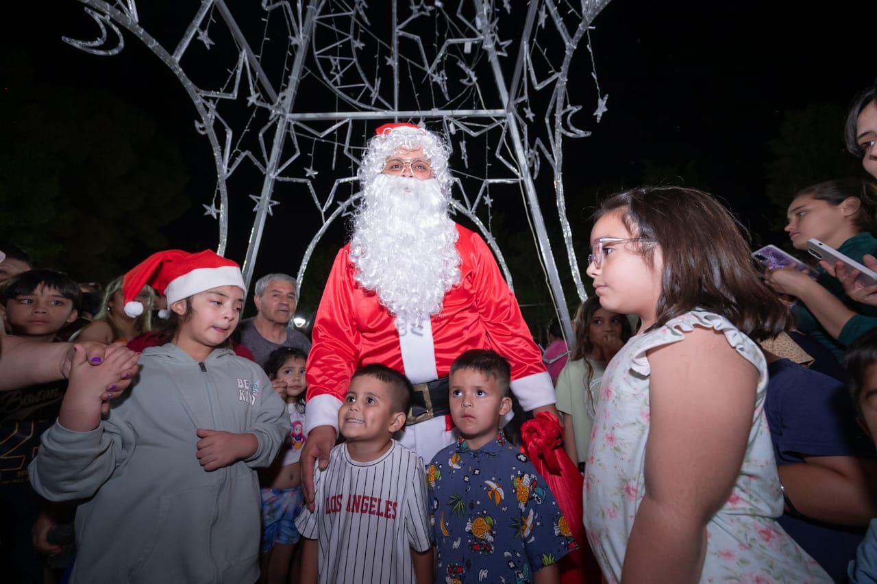 Durante la noche se entregaron gorritos navideños y Papá Noel sorprendió a los más pequeños con golosinas, sumando alegría a la celebración. La organización de Encanto Navideño – Cutral Co se ilumina en el corazón de la ciudad estuvo a cargo de la Secretaria General, Sandra Valdivia, y de la Subsecretaria de Cultura y Educación, Cintya Ferreyra Mesa.