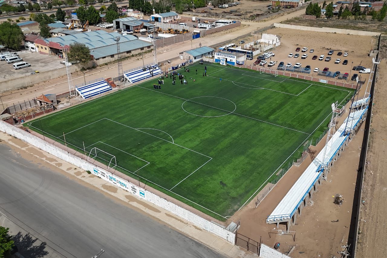 Esta mañana, en el Club Atlético Rivadavia, se celebró un nuevo avance en materia de infraestructura deportiva. La intervención contempla la construcción de 100 metros lineales de gradas, con siete escalones de capacidad para espectadores y una altura total de 2,80 metros.